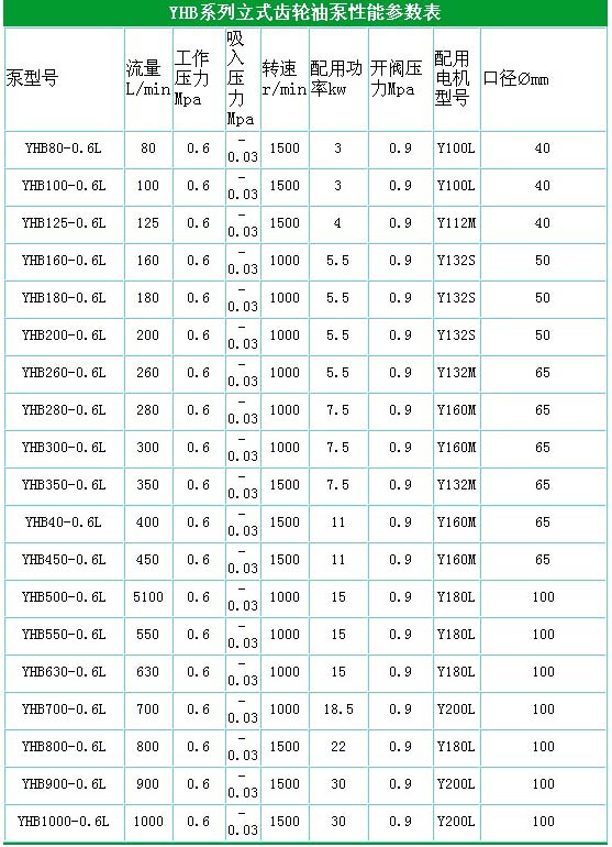 YHB800,YHB500,YHB400具有運轉平穩(wěn),噪聲低,適合長期連續(xù)工作的特點. 適用范圍和主要用途 YHB型立臥式齒輪油泵主要用于石油,化工,冶金,礦山,電站,環(huán)保等行業(yè)的壓縮機,冷凍機,船舶等大型機械設備的強制潤滑和和種機械設備中稀油站供油系統(tǒng)長期工作的場合.輸送介質溫度30°C-120°C,粘度不大于50m/S的不含固體顆粒雜質的機械油,汽輪機油等有潤滑性